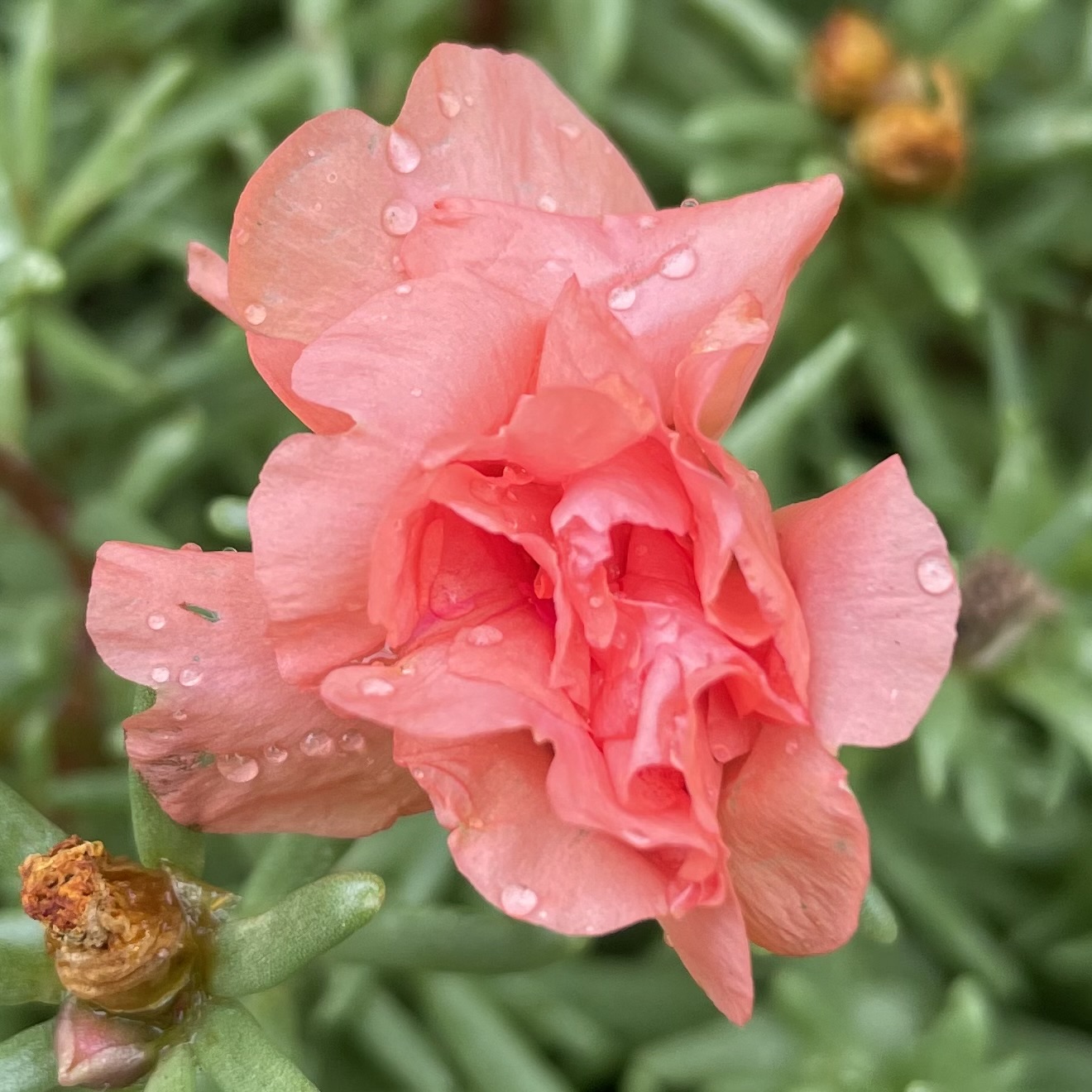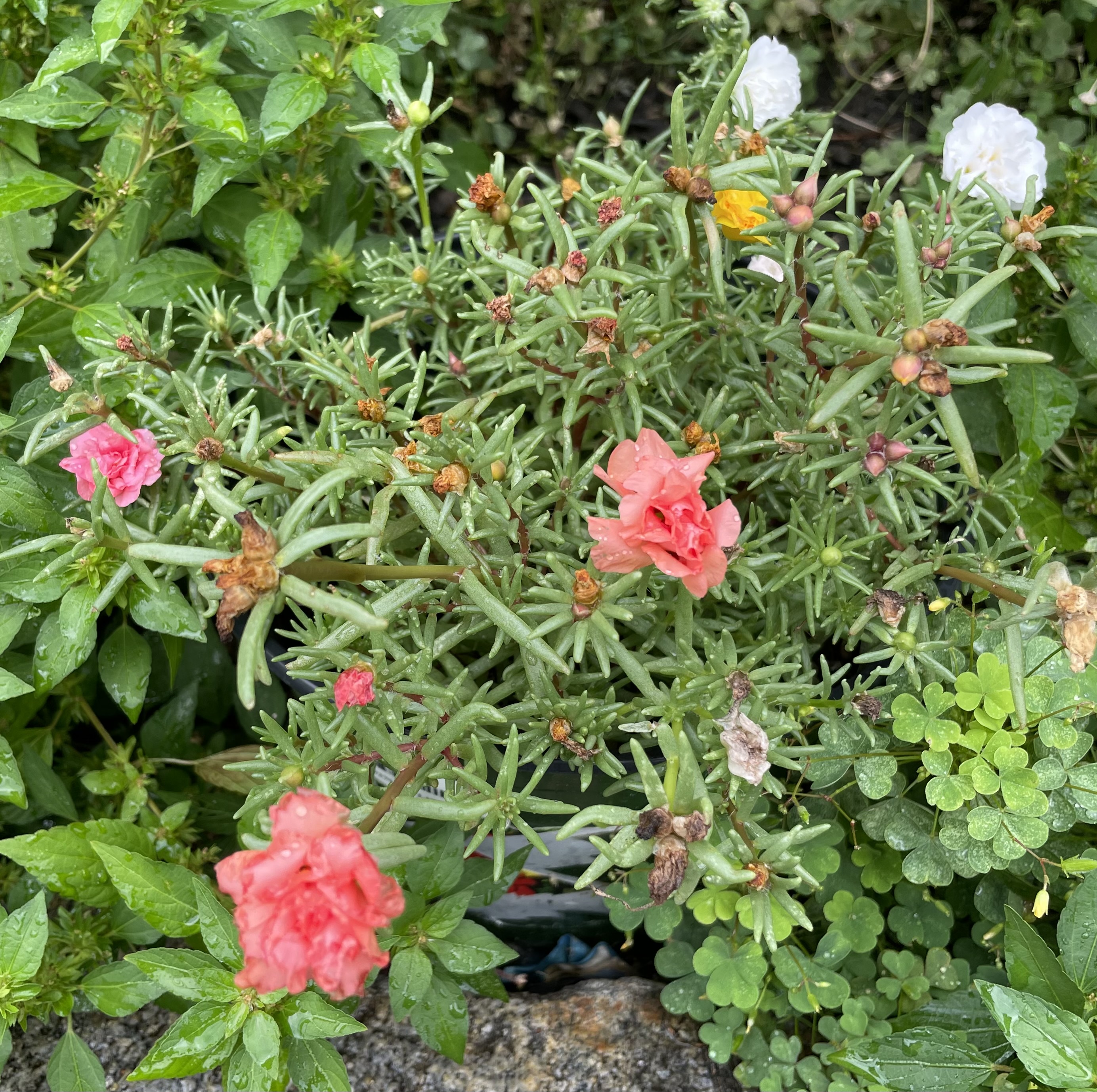 我上小学时好多人在种掐一段插在土里就会生长的植物,我们叫它“掐不死”。我从东兴寺小学的同学那要到几节“掐不死”回家种出了一盆。“掐不死”不开花,它细细的枝和茂盛滚圆针状的叶子很耐看,属于观赏植物。如今这类滚圆叶子的观赏植物统称“肉肉”了。有一种长得像“掐不死”但能开色彩鲜艳硕大花朵的植物叫太阳花。上世纪七十年代还没有卖花草的苗圃,我种的花草都是要来的;我的朋友都没有太阳花,所以我也没有种过我喜欢的太阳花。