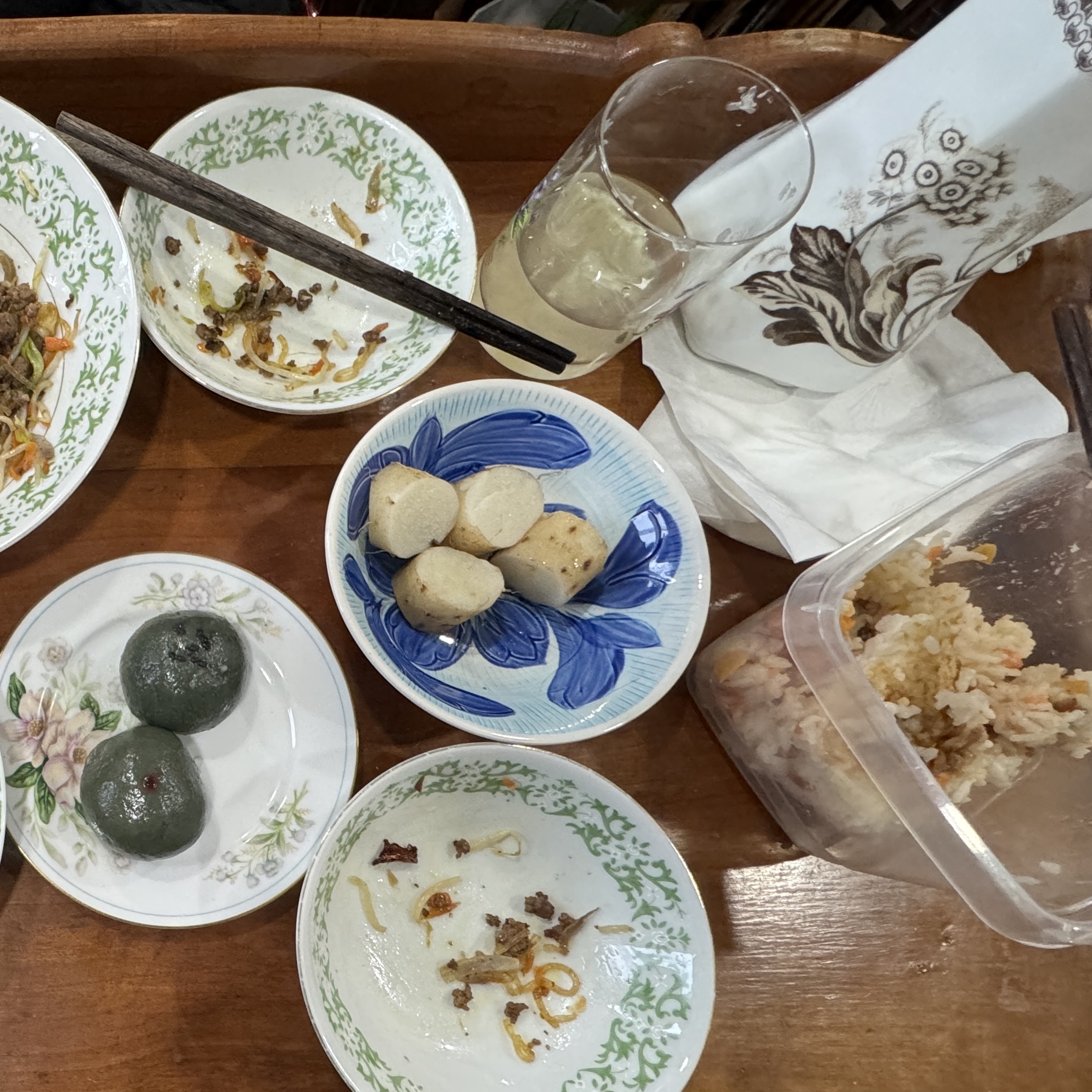 There were only two dishes tonight: twice-cooked pork belly and stir-fried rice noodles (with minced beef, green vegetables, bean sprouts, red onions, and carrots). Zelene had millet porridge, my son and I had the leftover rice. I passed the porcelain jar of lemonade to my son and said: “The lemonade is made of fresh lemons with less sugar, drink it first. If it’s not enough, there are three more glasses of lemonade made from frozen lemon juice with more sugar.”