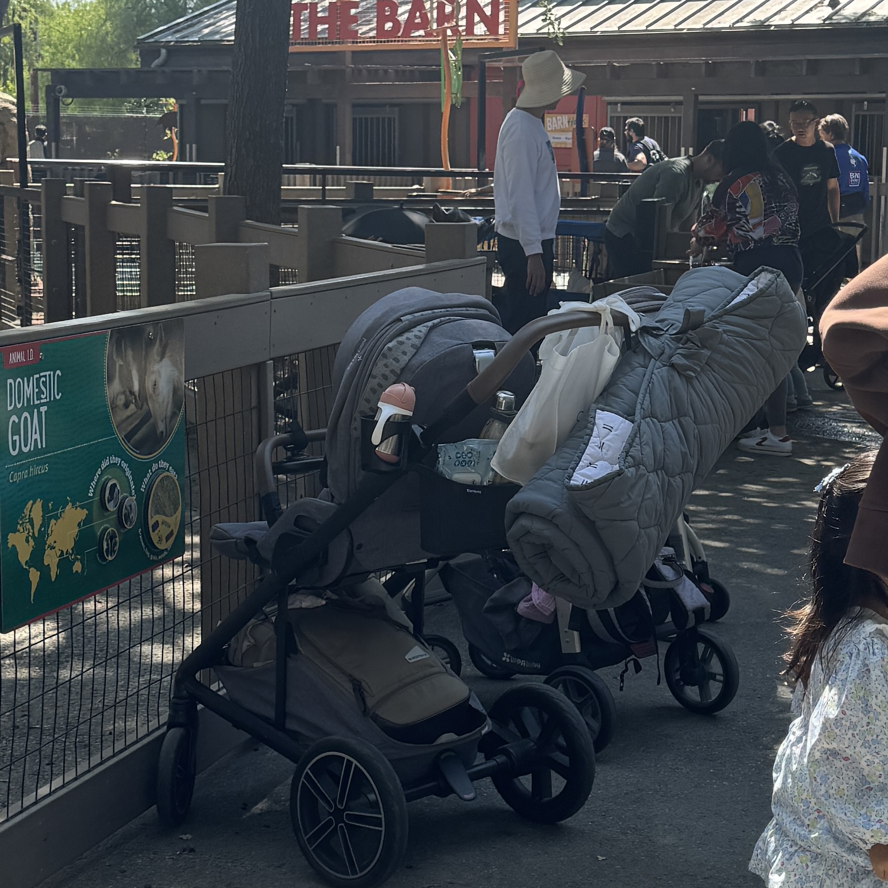 因为小冰不喜欢摸羊或喂羊,我们平时不去羊棚。今天我专门去羊棚转了一圈,看到一个很夸张的超载单人童车,扶手上挂了一个裹着的大垫子,底层货兜也塞得满满的。我赶紧拍了一张照片,准备让女儿见识见识,因为她常批评我出门带太多东西。