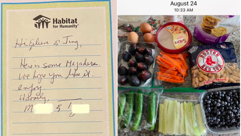 今天, 9月19日, 919在华语中是很吉利的数目,“久要久”音义是长久长久,适宜分享难忘的故事。想起今年犹太新年的一个温馨小故事。犹太新年是一个持续两天的节日。今年的犹太新年在周一(9月6日) 的傍晚开始,在周三(9月8日)的傍晚结束。9月6日, 周一劳动节的下午,T教授打来电话,M教授在电话上说:“今天是犹太新年,我做了一点Mejadera,知道你喜欢吃Mejadera,一会儿T教授会送一点新鲜的Mejadera给你们。”