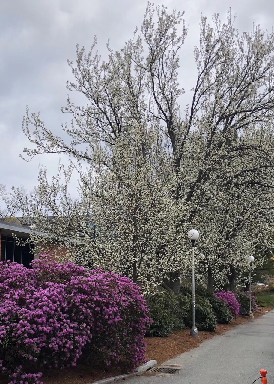 春雨后的人间四月天,Waltham小城的马路边、校园里、医院旁的大梨树都开满白花,白得引人注目。